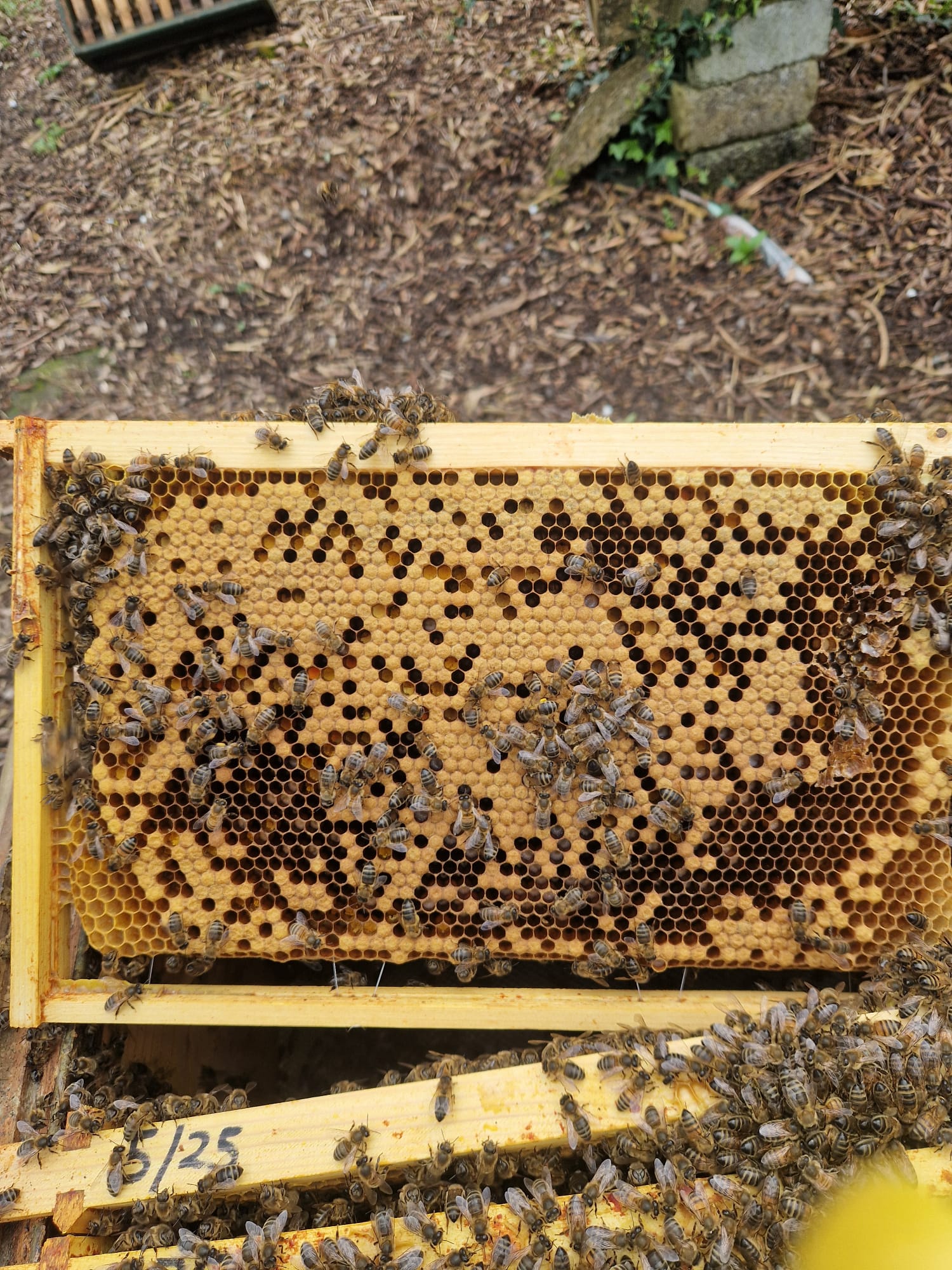All hives inspected, including our new WBC hive, thanks to help from our trainers on the day – Linda, Aisha, Lesley and Pete.