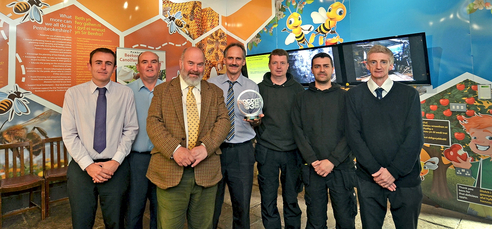 Pembrokeshire County Council’s graphic design and sign units, who created the ‘Honey Kitchen’ and the ‘Bee Hive’ exhibition designs for the ‘Pembrokeshire Beekeeping Centre’ at Scolton Manor, have scooped a national award, winning ‘First Prize’ for the ‘Best Wide Format’ category at the recent APCOM (Association of Print and Communication Managers) annual awards at Manchester.
