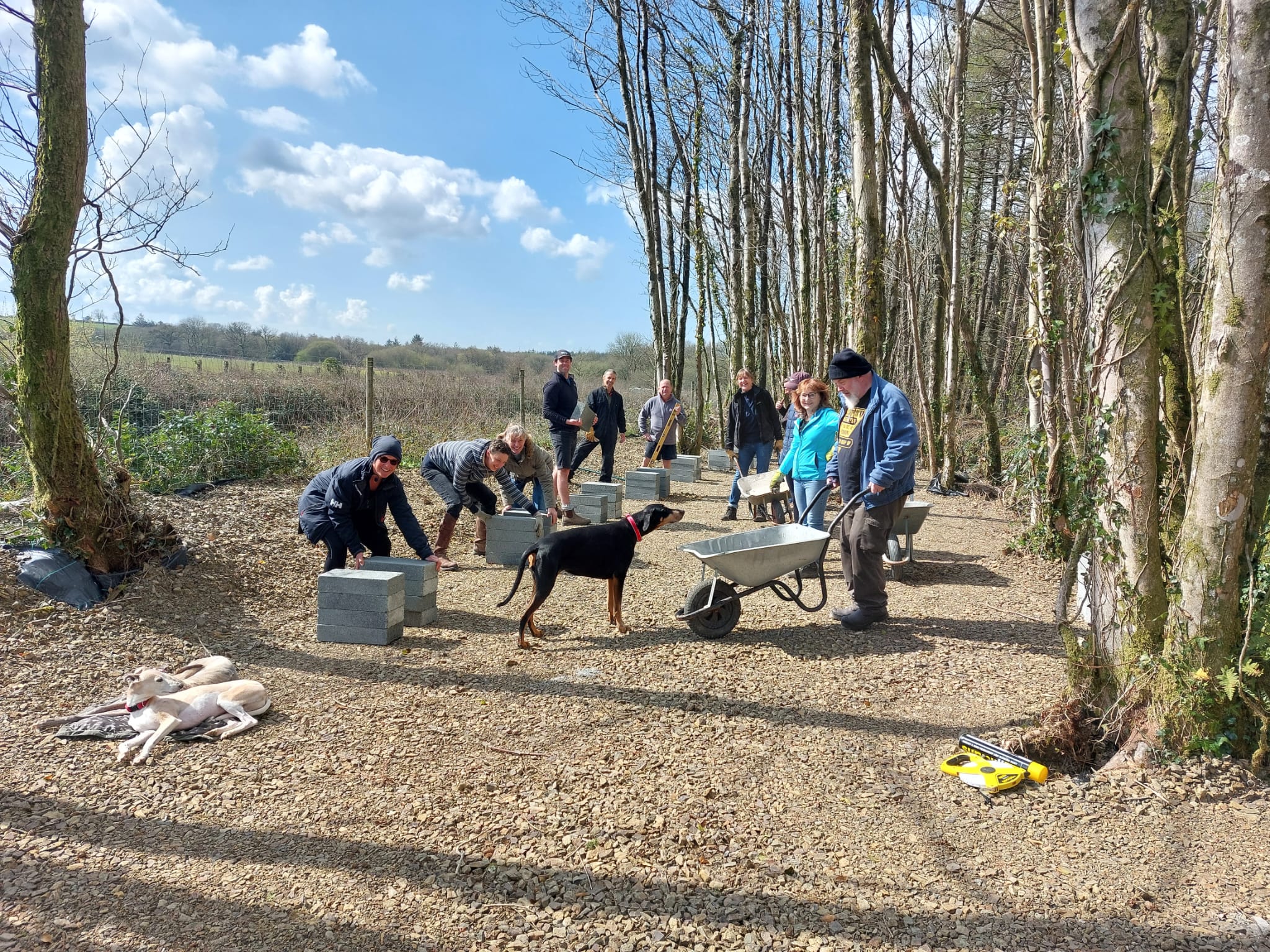 Cawsom weithgor hynod lwyddiannus arall ddydd Sul, yn gosod y standiau cwch gwenyn yn barod ar gyfer y gwenyn yn ein Gwenynfa Goedwig newydd ym Maenordy Scolton.